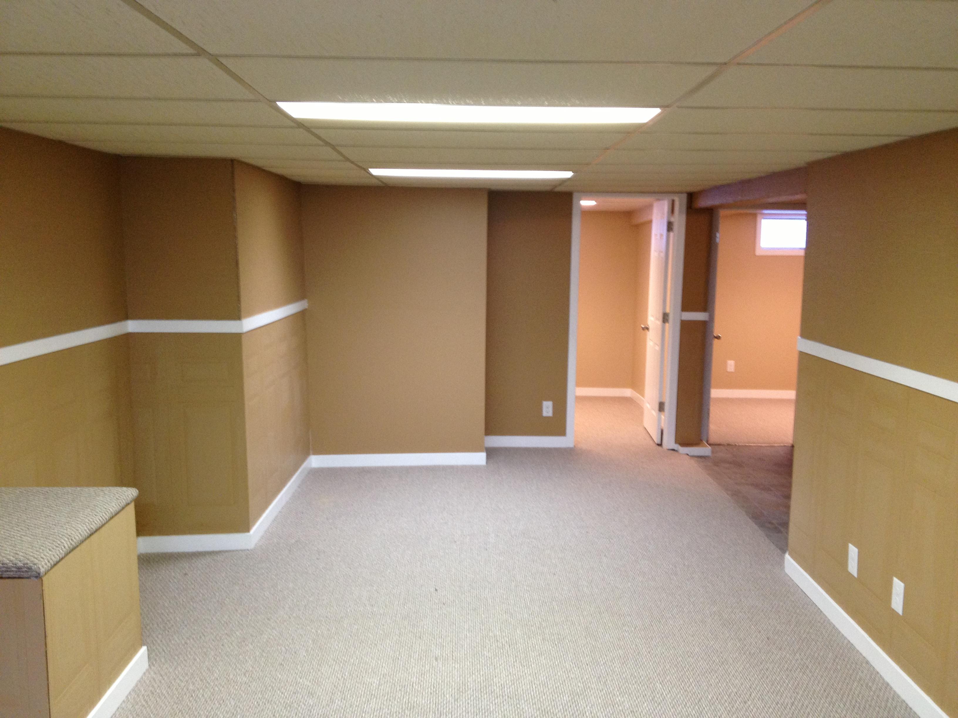 This basement hadn’t been updated since the 70s and the wood panelled walls and blue carpet really showed it. We repainted the walls, changed the flooring, installed a brand new kitchen and bath, and turned this whole space into something you would actually want to live in.
